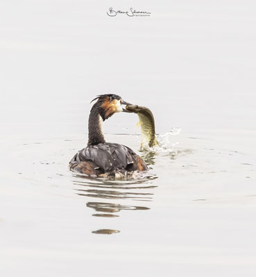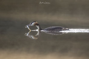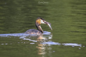 Zur Nahrungsauswahl des Haubentauchers gehören vor allem kleine Fische sagt Nabu. Ich konnte ihn aber schon mit einem sehr großen Fisch ablichten. Aber auch Wasserinsekten und kleine Krebse, am Meer sogar Garnelen, werden hin und wieder erbeutet.