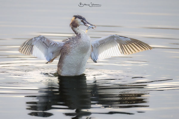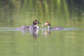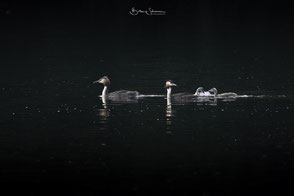 Seit ich meinen Wohnwagen am See stehen habe, bin ich viel mit der Kamera am See. Mein Glück, ein Haubentaucherpärchen dort zu haben. Die sind mittlerweile zu meinen lieblings Wasservögeln geworden. Zu unterschiedlichen Lichtsituationen, zeigen sie sich in den verschiedensten Aktionen. Ich kann hier stundenlang sitzen und zuschauen. Mit meinem Canon RF 200-800mm komme ich ziemlich nahe ran. Da der See nun nicht ganz so breit ist, kann ich auch, wenn Sie zu weit weg sind, kurz um den See. Seit ein paar Monaten haben sie Junge. Mitte Juli hatte ich das erst gesehen. Mein Vorteil war, dass ende Juli, die Kleinen so groß und viel Hunger hatten. Die Kleinen können da echt sehr lautstark piepsen. Die Eltern sind da echt am Ackern. Fisch um Fisch muss gefangen werden und satt werden die einfach nicht:-) Für mich ein riesen Spektakel und Fotos ohne Ende mit Fisch im Schnabel. Was für eine herrliche Zeit.
