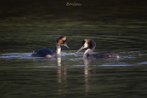 Die Balz der Haubentaucher beginnt schon im Winter und dauert an, bis die Paare anfangen, sich ab März mit dem Nestbau zu beschäftigen. Der Zeitraum, dieses Spektakel zu beobachten, ist also recht lang. Ab Mai etwa können Sie dann die putzigen gestreiften Jungvögel bei den ersten Ausflügen oder auf dem Rücken der Eltern beobachten.