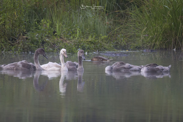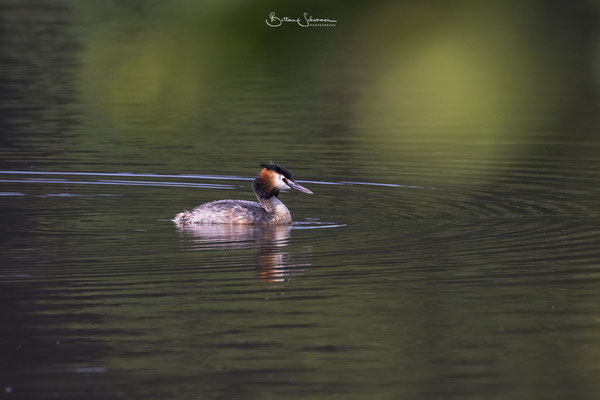 Entlang der Seen, können wir Haubentaucher, Schwäne, Gänse, evtl. Eisvogel und Reiher fotografieren. Schon ab Juli sind Haubentaucher, Schwäne etc. mit Ihren