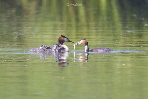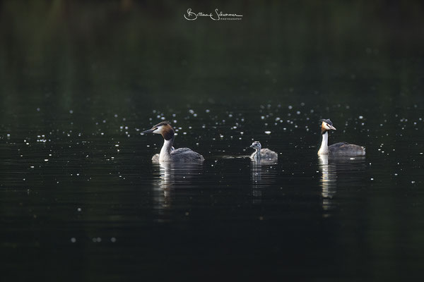 Jungen rund um den See unterwegs. Je größer z. B. die Haubentaucher Jungen sind, umso mehr wollen die gefüttert werden. Ein absolutes Spektakel, wie die Eltern Fische fangen damit die Jungen satt